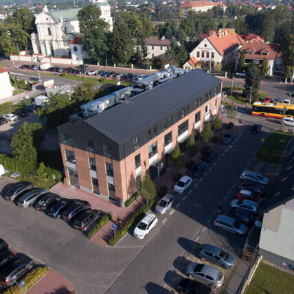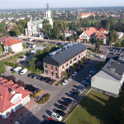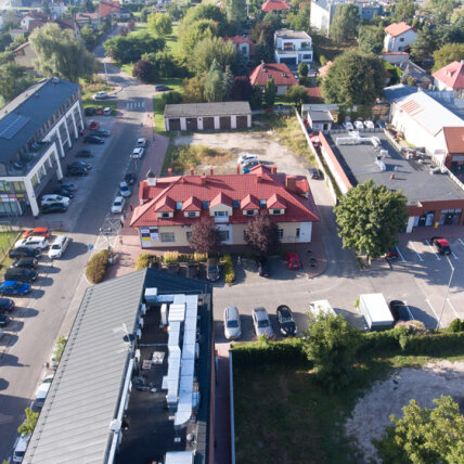 Budynek usługowo-biurowy Stare Babice - nowoczesny budynek usługowo biurowy z infrastrukturą zewnętrzną. Budynek o powierzchni 1300 m2, wyposażony w wentylację mechaniczną, klimatyzację, windę.