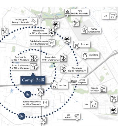 - C.H. Ursynów- 1.2 km,