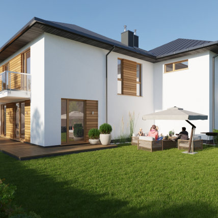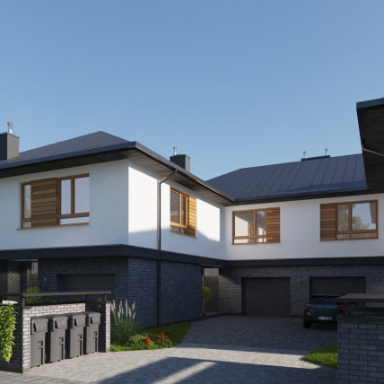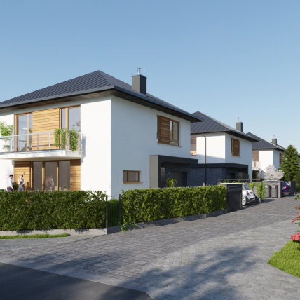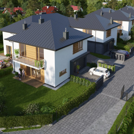 Ogrody Pelargonii to zespół 6 budynków dwulokalowych tworzących mini osiedle.