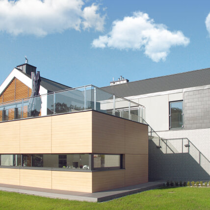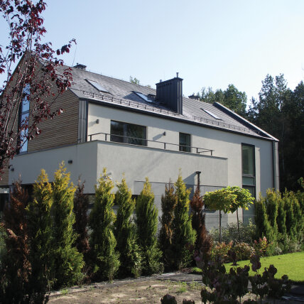 Osiedle Kabacki Zakątek - niepowtarzalne osiedle willowe na Warszawskim Ursynowie z doskonale zaprojektowanymi budynkami i wykonane z wysokiej jakości materiałów. Duże i wygodne domy z przestronnymi ogrodami dają mieszkańcom poczucie komfortu, luksusu, oraz możliwość kontaktu z przyrodą, a jednocześnie pozwalają w pełni korzystać z uroków miasta. Duże przeszklenia i tarasy sprawiają iż domy otwarte są na ogrody zarówno latem jak i zimą. Klient: Spółdzielnia Mieszkaniowa Kabacki Zakątek